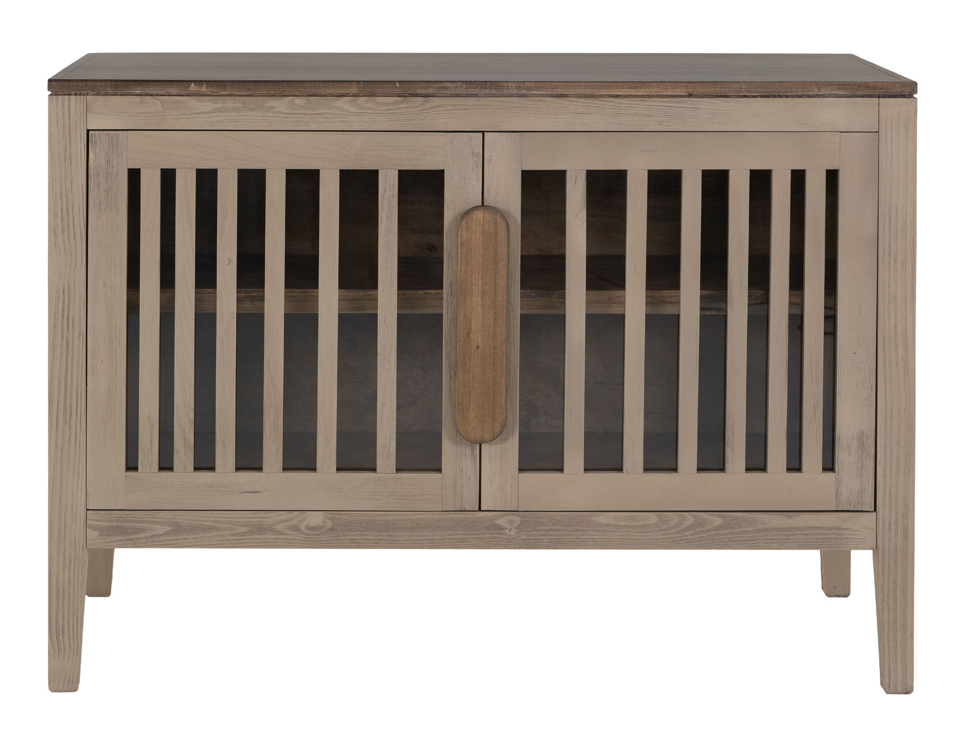 2 Door, 1 Shelf, Cosole. The Autumn Console is a beautiful piece designed to enhance your living space by combining classic elegance with modern practicality. Meticulously crafted from durable pine wood, this exquisite console showcases beige and brown finishes that add character to any room.
