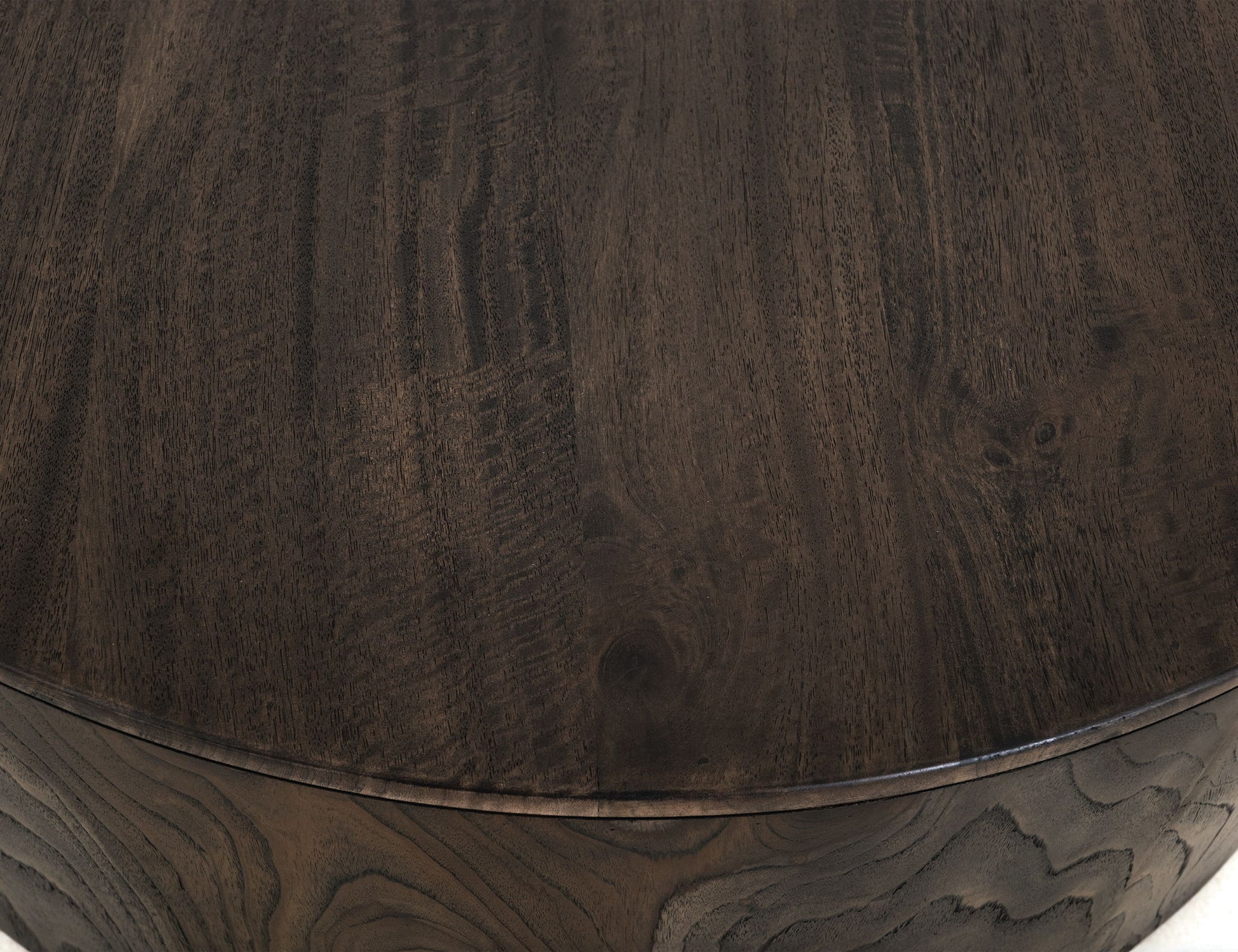 End Table. Our Balam occasional tables are handcrafted from mango and teak wood. This simple yet stunning collection will bring an organic, modern touch to your space. The End table features a minimalist cylindrical design with sleek lines and a smooth surface. It is a perfect addition to any room, adding both functionality and modern style.