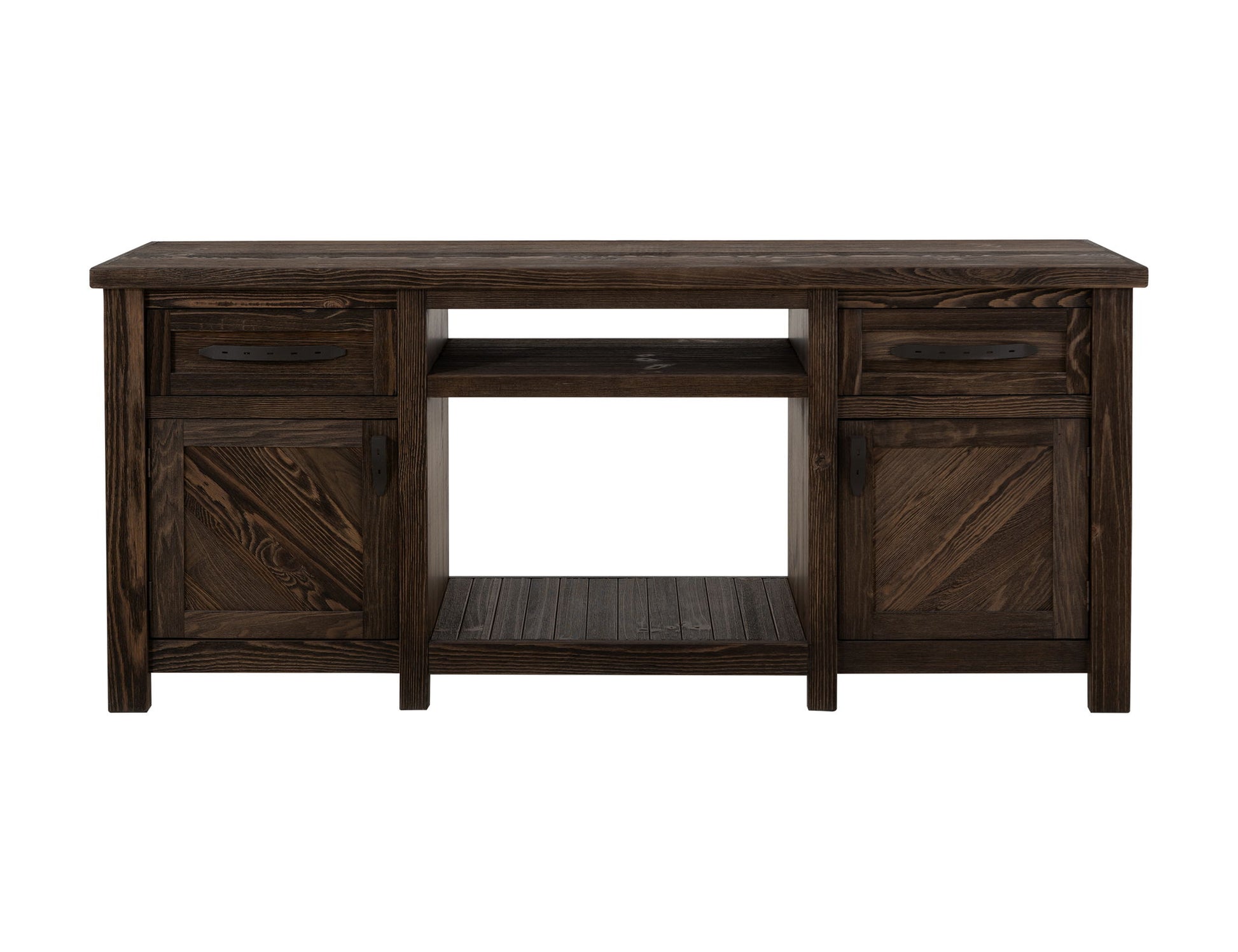 - Lightly distressed wood with a brown multi-step lacquer finish.