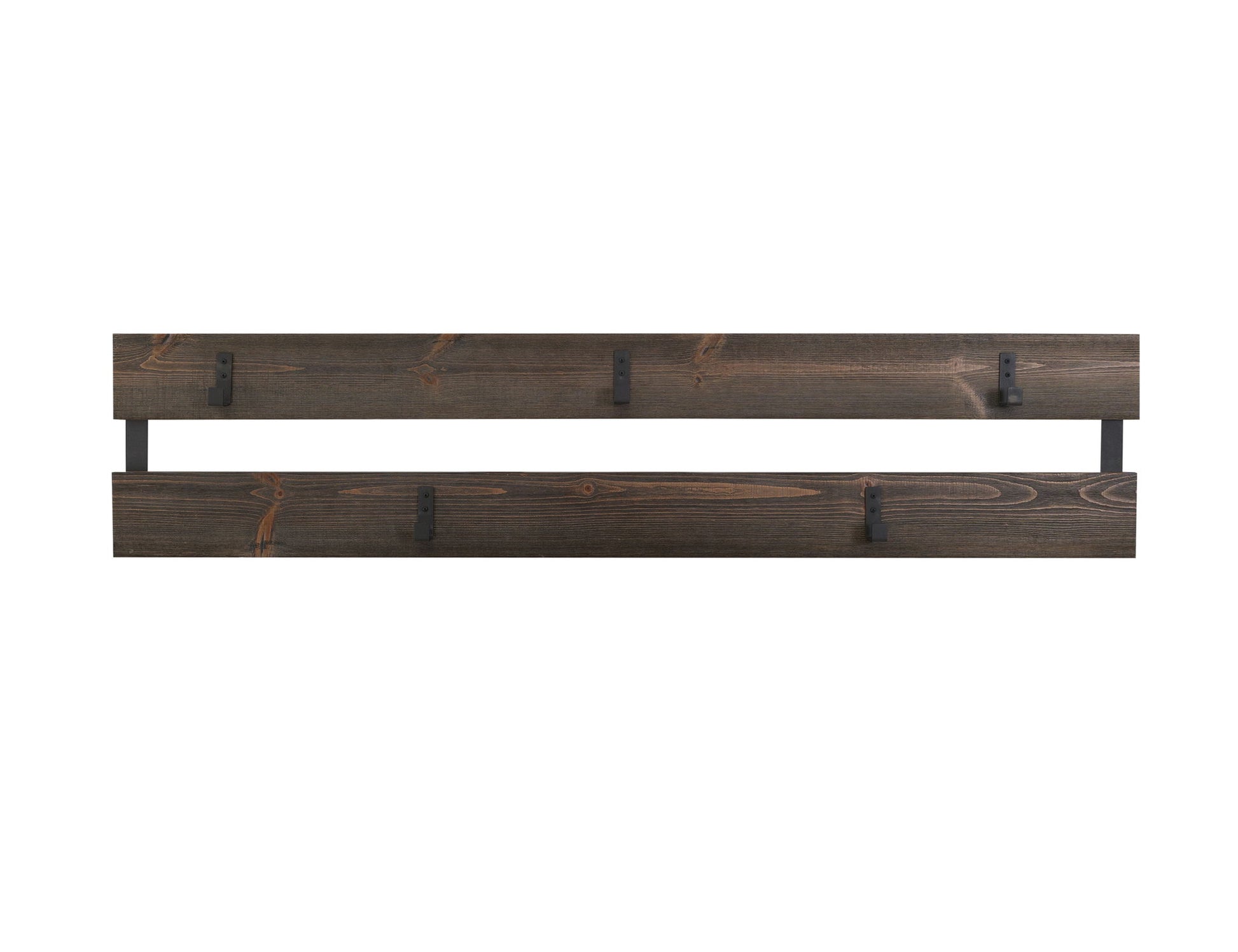 Coat rack and bench. A stylish combination of function and design, this coat rack and bench set from the Dutton Collection is crafted from pine wood, showcasing its natural charm with a dark rustic finish. The coat rack features two horizontal planks fitted with sturdy metal hooks. The matching bench features a comfortable, upholstered seat that blends seamlessly into various décor styles. The bench includes a lower shelf and two open cubby compartments, This multipurpose design makes it especially useful for entryways, helping keep your space tidy and functional. It’s a perfect blend of practicality and style!
