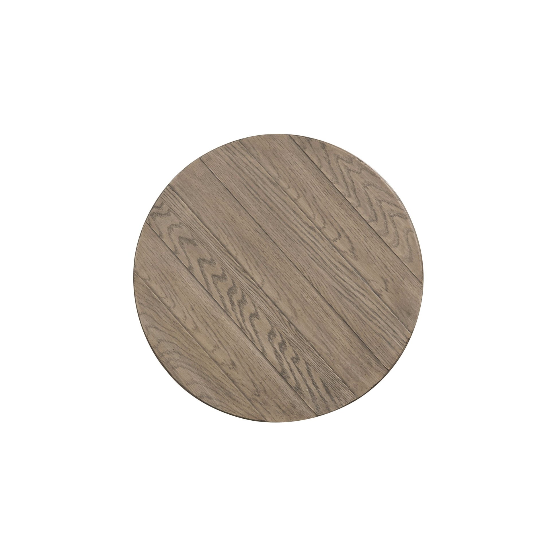 Accent your space with the Heartland round pedestal chair side table. Crafted of rubberwood solids with cathedral white oak veneers, this piece features an antique white finish with a planked tobacco top, anchored by a round turned pedestal with X base. This classic chair side table would make a great addition to any traditional space.