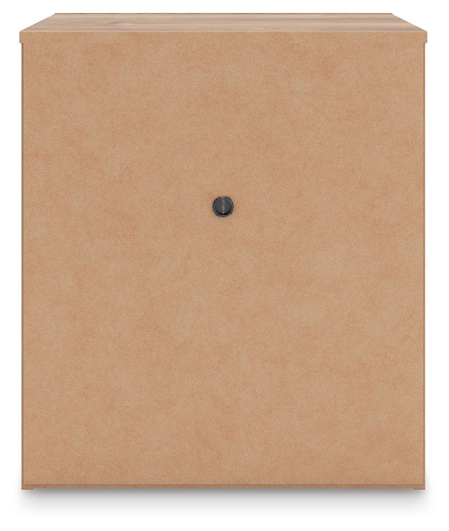 - Drawer interior is lined with a faux linen laminate for a clean, finished look