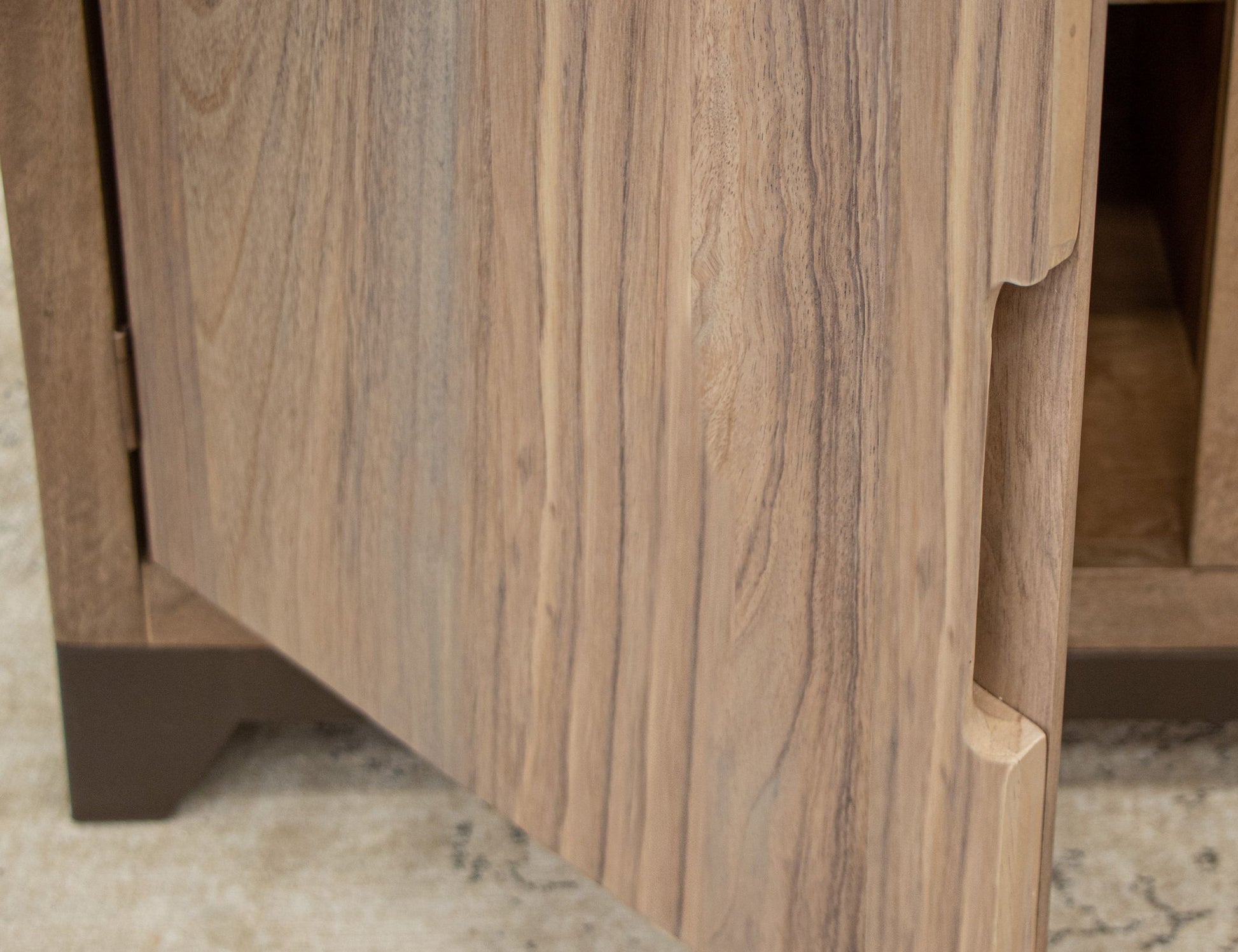 - Tops are crafted from parota wood, while sustainable mango wood is used for the rest of the case piece.