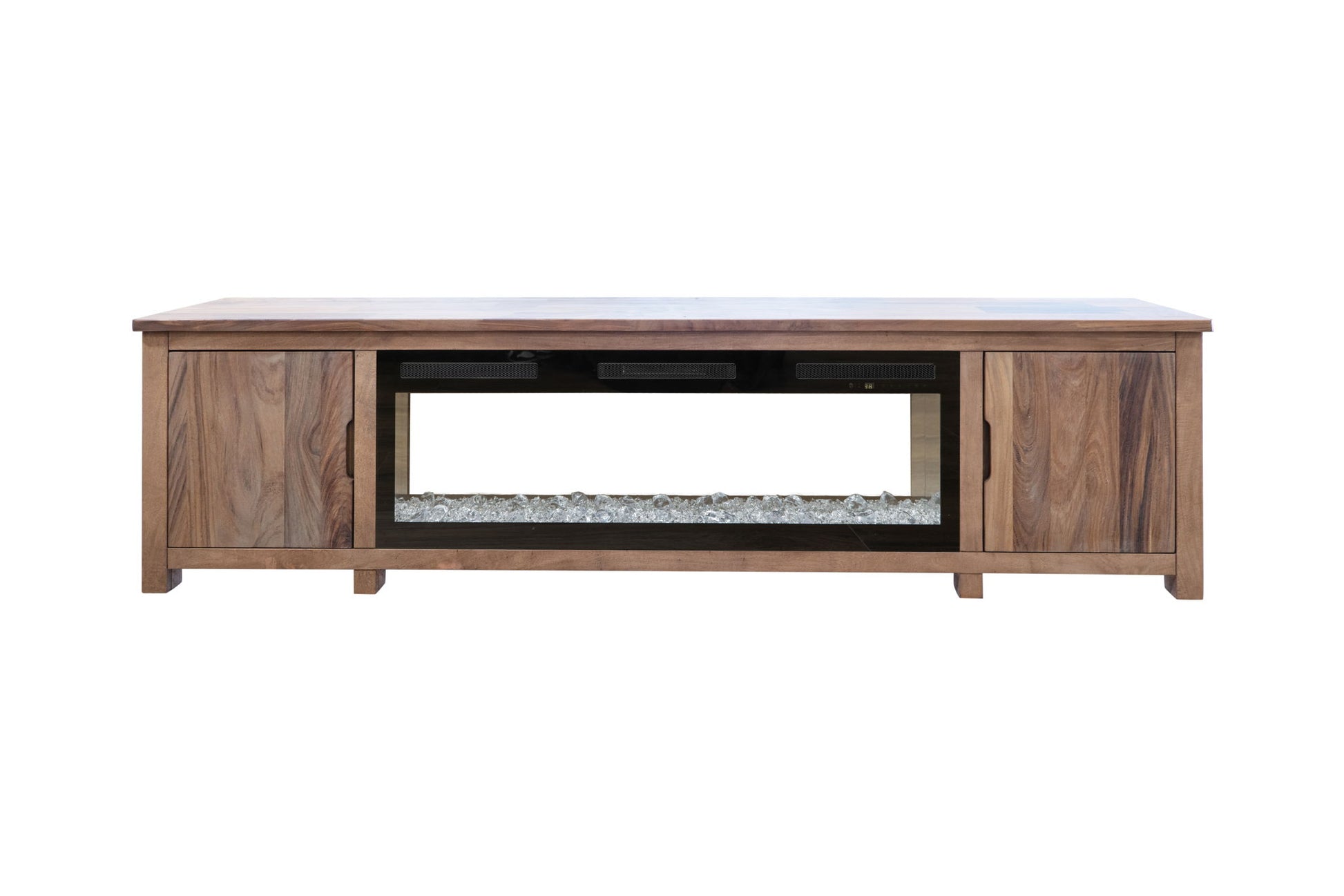 Natural Parota - 93" Electric Fireplace - Dark Brown