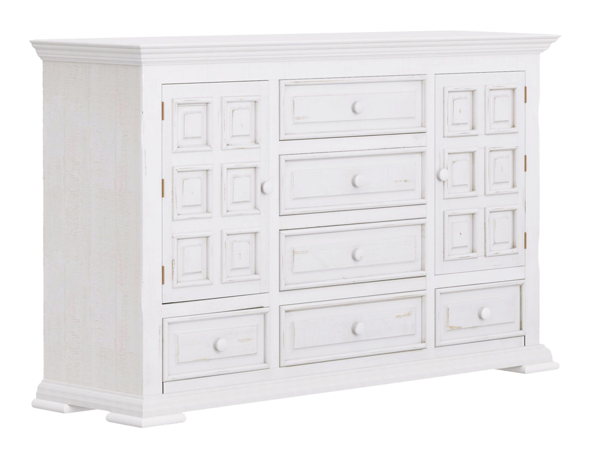 6 Drawer 2 Doors Dresser. Drawing inspiration from transitional design, the Terra collection embodies the effortless elegance of its clean, sturdy shapes and the charming rustic grain of solid pine wood. With a tasteful deep finish, this collection represents a harmonious fusion of modern and traditional elements, making it a timeless addition to your home.