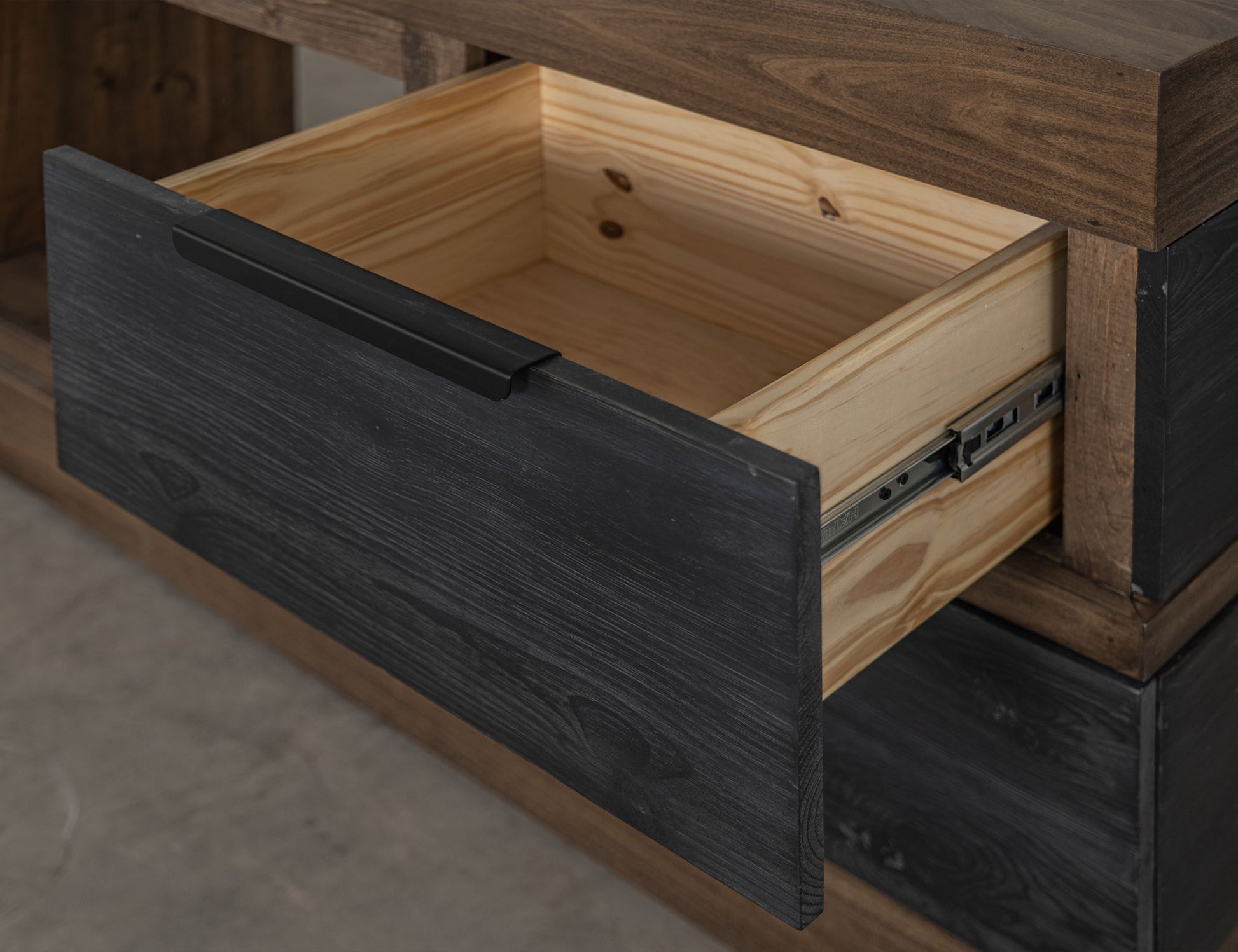 - English dovetail on 100% solid wood drawer fronts. Hafele steel slides.